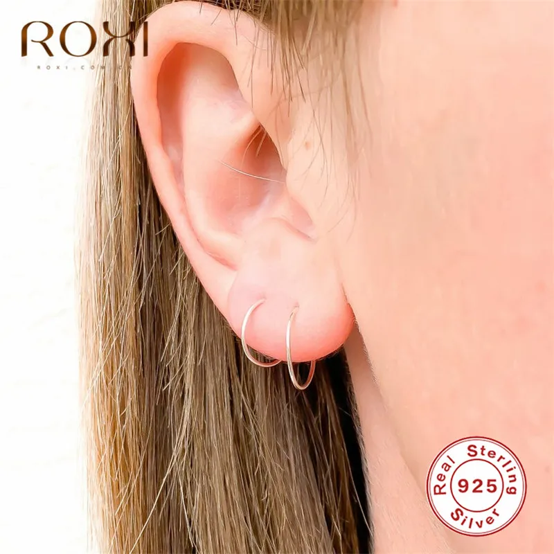 описание продуктаROXI Модные ювелирные изделия простые серьги из стерлингового серебра 925 пробы для женщин мини маленькие серьги-кольца ушные кости Пряжка круглая серьга круга