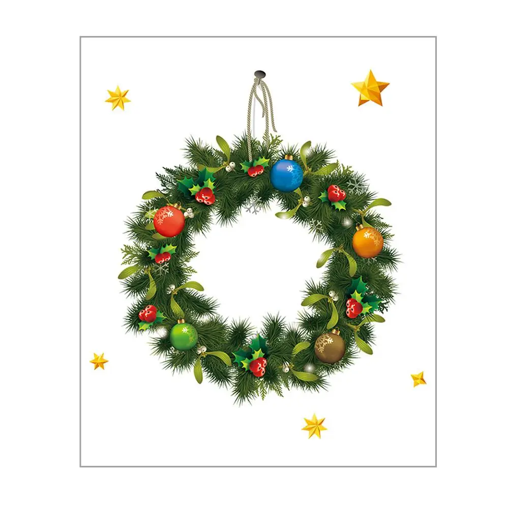 описание продукта1 шт. 30*45 см Рождественский венок наклейки на стену витрина, стекло Праздничные наклейки Санты фрески Новогодние рождественские украшения