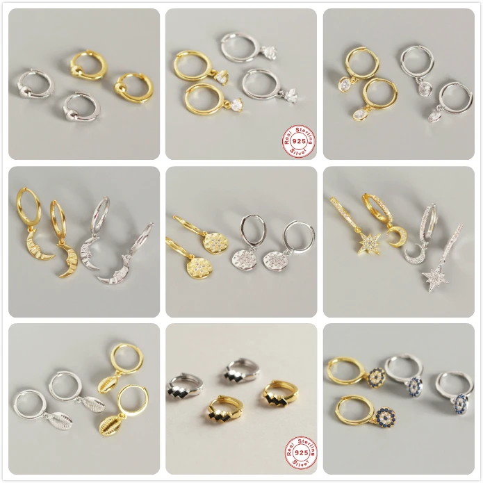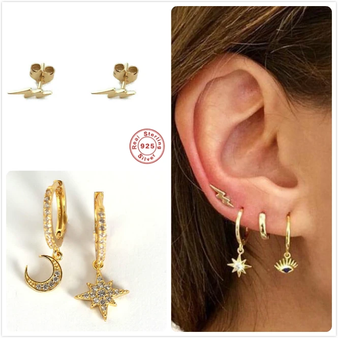 описание продуктаСерьги из стерлингового серебра 925 пробы для Чехол женский кулон серьги-кольца серьги на кость уха серьги на подарок девочке Злой Глаз Звезда Луна aretes B5