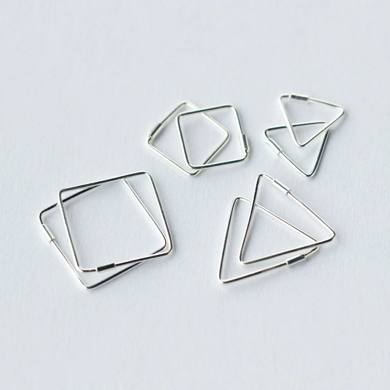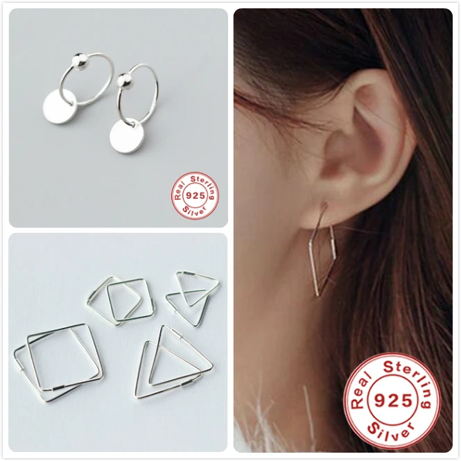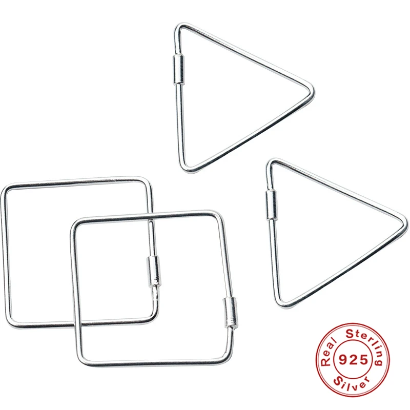 описание продуктаКуинби 925 стерлингового серебра серьги для женщин уличный стиль большие серьги в форме треугольника серьги девушки круглой квадратной формы серьги-обручи Q5